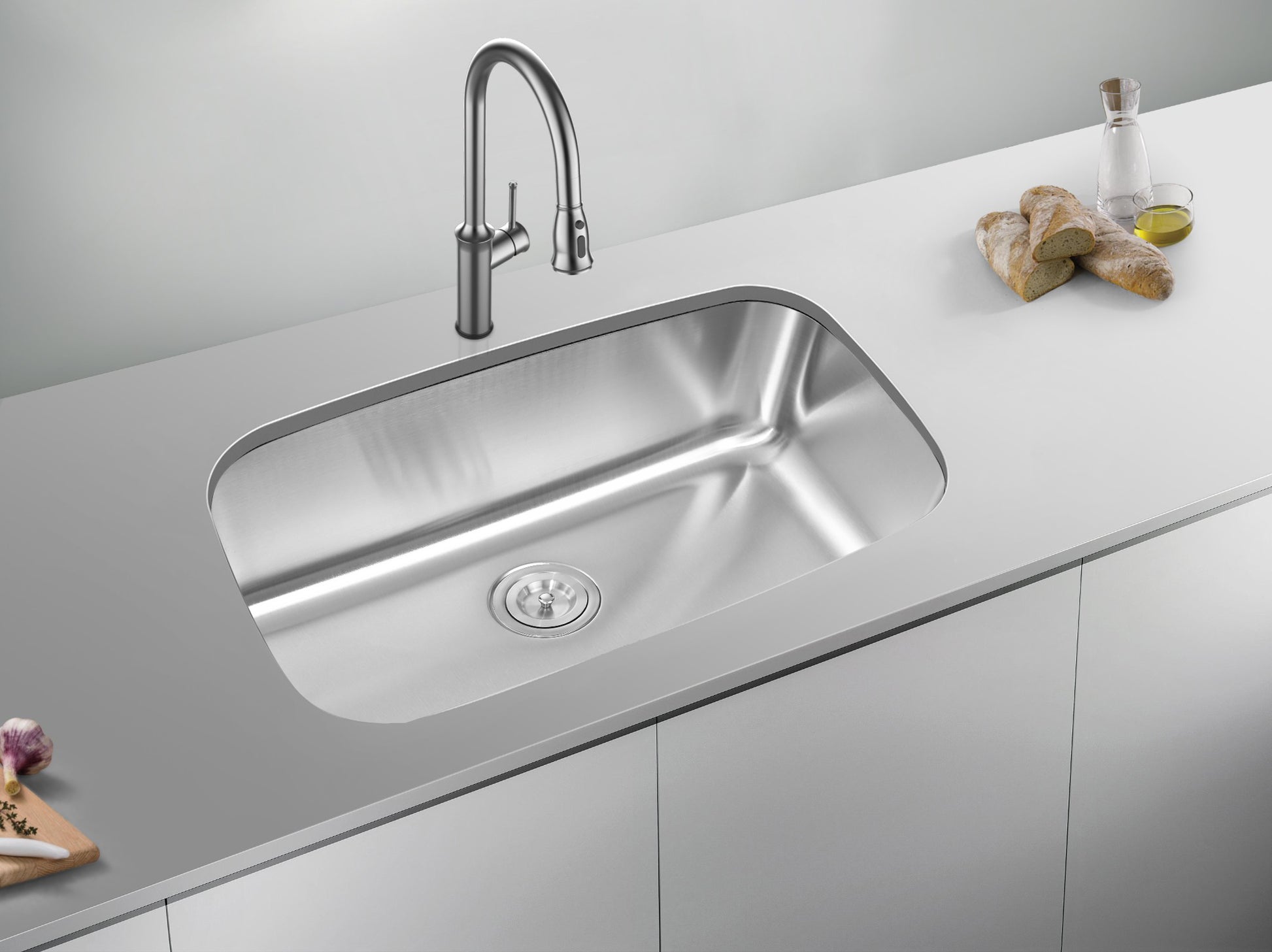 Crafted from high-quality 18/8 CrNi 304 Stainless Steel, the Model 3018S offers durability and a sleek satin finish. Expertly pressed and featuring a rear drain hole, this sink is 18 gauge for added thickness and strength. Upgrade your kitchen with this top-of-the-line option.